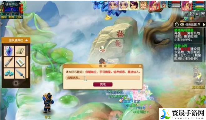 (2)前往破军方位(44,85),请谪仙人为悬楼旁的巨石题字。