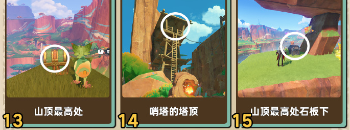 4、宝箱15:山顶最高处石板下。