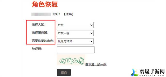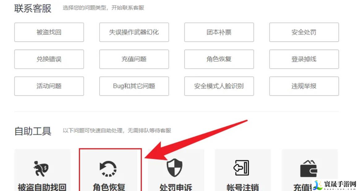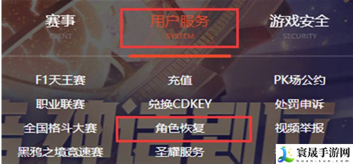 1、登录游戏官网后找到用户服务的角色恢复。