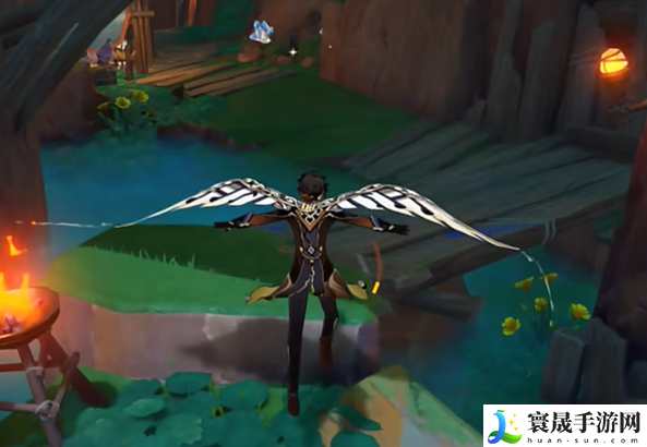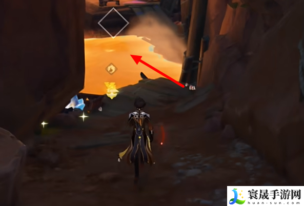 4、飞过去,左转进入山洞。