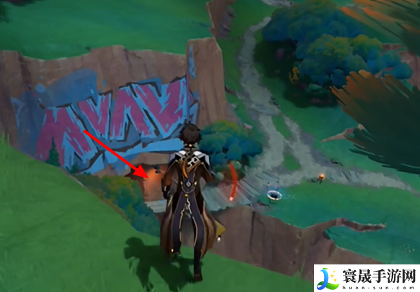 2、视角向左转,沿着悬崖边走。