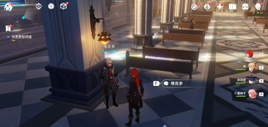1、先来到蒙德大教堂,找到NPC维克多对话。