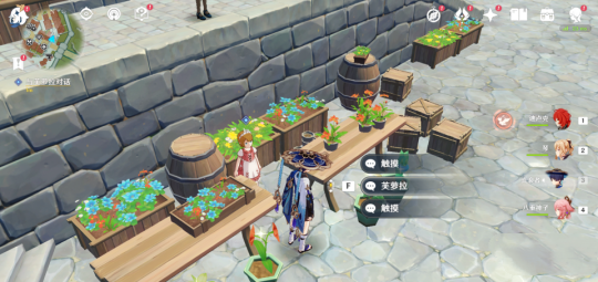 3、在蒙德城正门花摊旁找到芙萝拉对话,选择选项“是”。