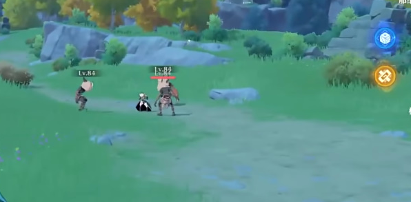 1、踏入风吟高地,英勇的玩家发现了被顽皮丘丘人团团围住的格茜妮,一番英勇战斗后,解救了这位无助的旅人,并与之展开了温馨的对话。
