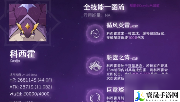 战斗开始后先正常进行输出,在科西霍进入狂暴状态时会出现雷属性护盾。