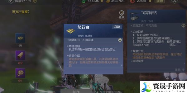 1、3月7日更新后,家园新增【过山车】玩法,旅者可前往西岛主城通过【藏器炉(金)】合成车站,将车站和轨道摆放在家园内进行体验。