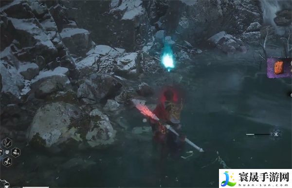 5、可以看到水池中央站着一个冒着蓝光的精魄怪物。