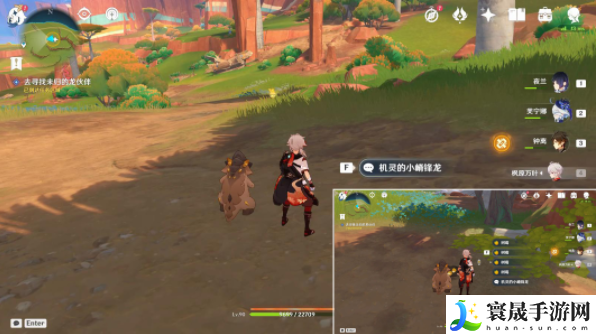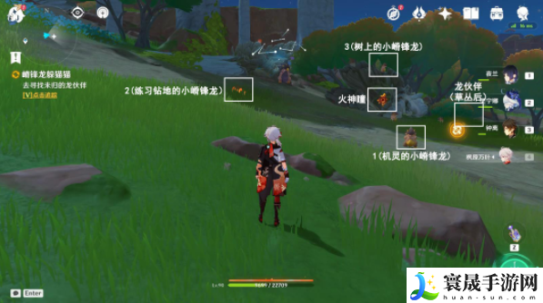 5、然后根据提示前往指引位置,到达后在草丛背后与龙伙伴对话