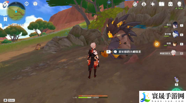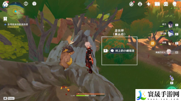 4、接着前往枯木上与树上的小嵴锋龙对话,对话结束后可以在草丛背后看到龙伙伴