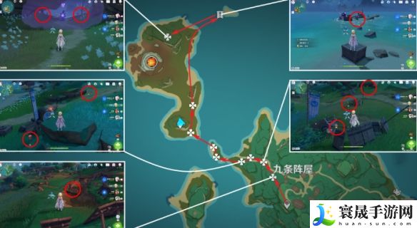 1、九条阵屋:有16个,路线是连贯的,按照下图位置找即可。
