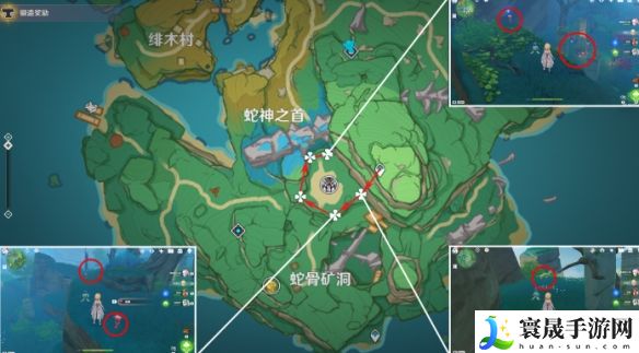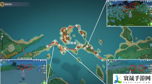 2、名椎滩:这个位置有26个,数量很多非常建议,根据下图路线提示来跑即可。