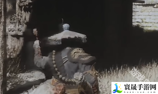 2.之后我们来到定风庄的沙国王父子后边位置,等到屏幕变成白色并使用拨浪鼓。