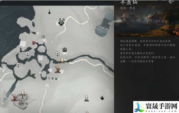 1、首先玩家需要前往不羡仙附近的传送点,然后只需按照地图上的标志往西南放向走即可。