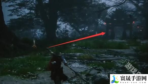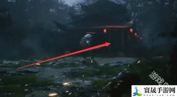 1.首先我们在剧情结束之后沿着道路往前走,可以看到红色的门上面挂着灯笼,沿着这里往前就可以来到兰喜村。