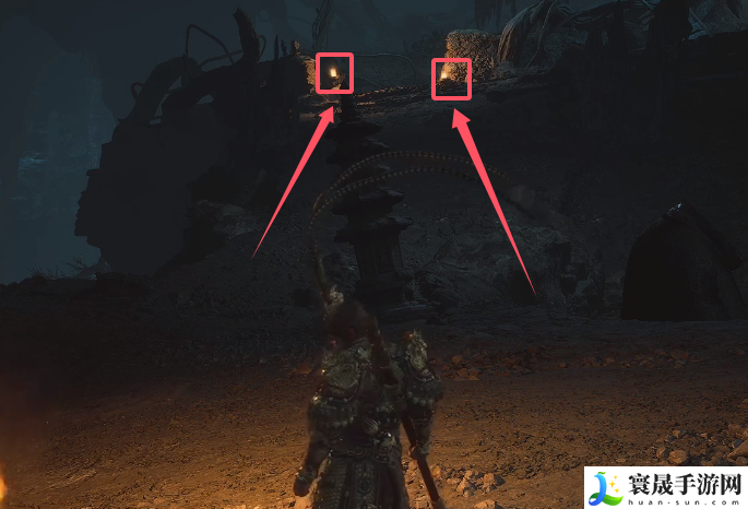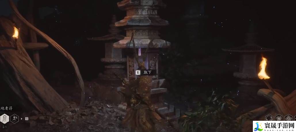 5、四妹的第三张符就在这两个火把之间啦。