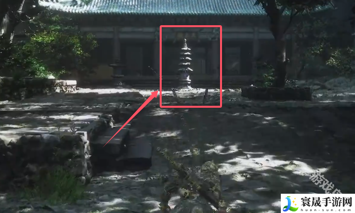 3、上玩楼梯之后,我们会来到一个庭院,庭院中有一个石塔。