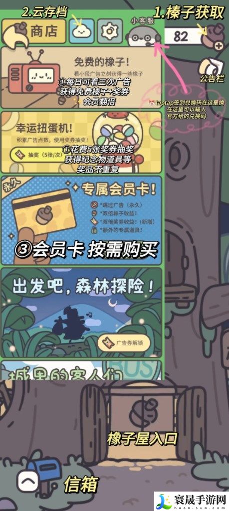 橡子获取+云存档+兑换码兑换位置+公告+信箱