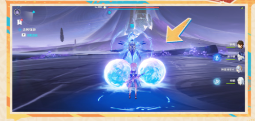 5、三星成就:需要在它吸收造物时破盾并击败,完成1次破盾后,场地边缘会出现向中心的水球,和之前一样冻结重击完成破盾,再快速击败它即可。