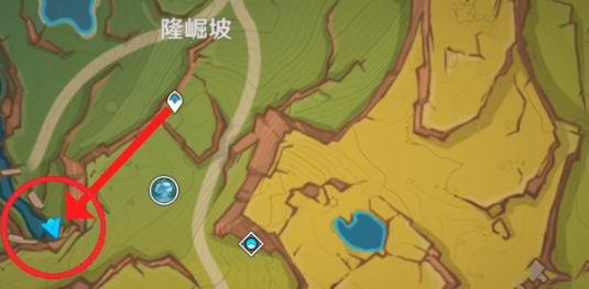 1、来到【隆崛坡】西边瀑布上的洞窟,附身里面的峭锋龙,借助墙壁来到洞窟尽头
