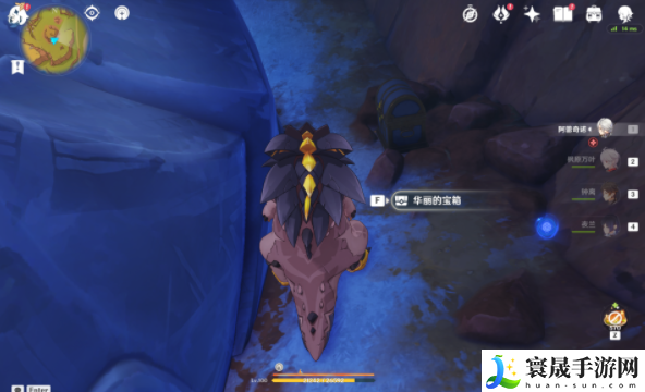 4、最后在大石头的后面,可以发现一个华丽宝箱,位置如下图所示