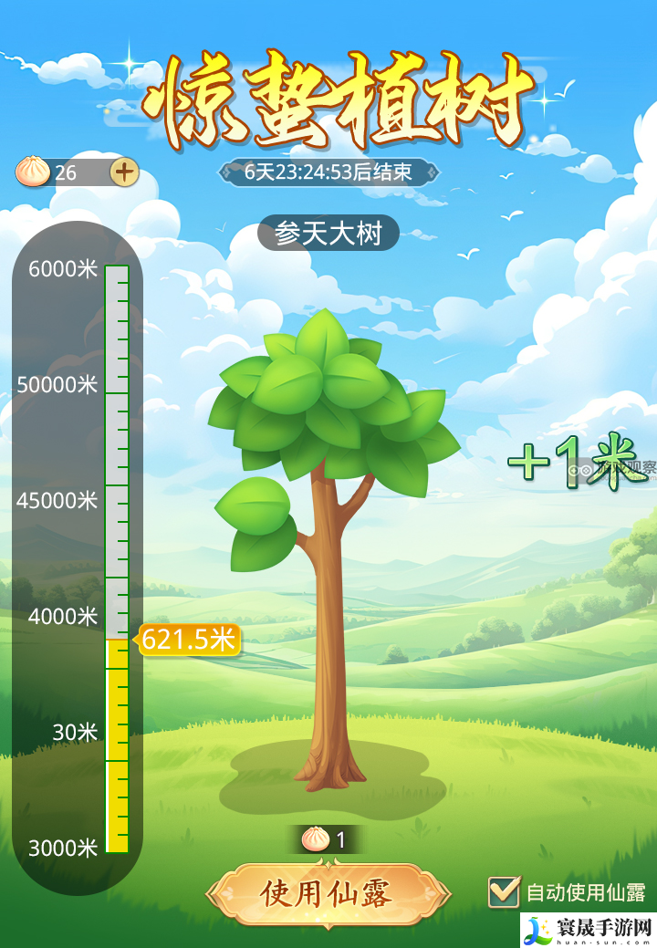 参与比武大会等日常玩法将会随机掉落植树道具——【仙露】,全服一起努力,让这棵初春的大树茁壮成长!一起分享大树成长的丰厚奖励,更可参与跨服比拼,与其他籼米一较高下!