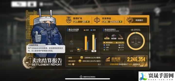 通过该方法获取的利润在论坛里仅此我看到的也有一次近250w了,当然消耗的疲劳值也大。