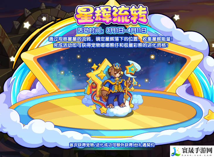 洛克王国星辉流转在3月1日上线了,今天的新活动玩法不是很难,玩家们只需要通过观察星星的流转,确定星辉落下的位置,收集星辉能量!完成活动即可获得宠物嘟嘟熊仔和极星彩熊的进化资格,具体玩法小编已经整理到下方了,快点来看看吧!