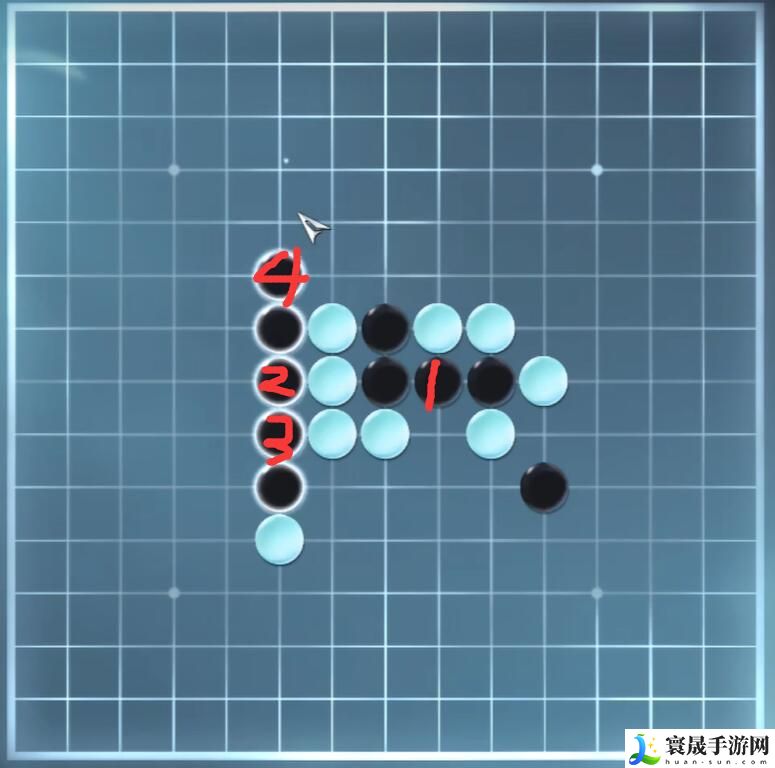 2、随后在与黑子隔开一格的左侧放置另一个黑子。
