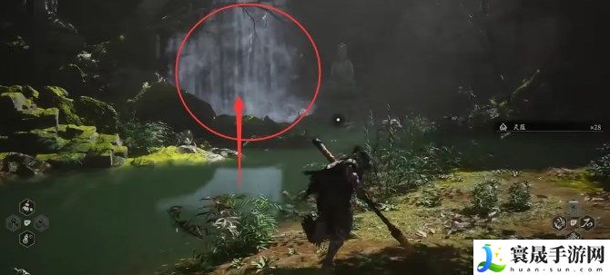 (5)拿到“龙鳞”之后,我们再传送到第一章节黑风山“苍狼林-林外”瀑布,会触发一段旁白,然后瀑布会自然散开,此时我们便可以进入隐藏BOSS赤髯龙所在的区域。