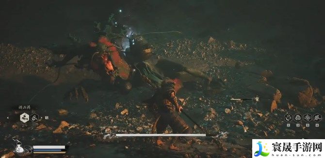 (3)“龙鳞”的位置在第二章节黄风岭,传送至黄风岭-沙门村-不济谷,也就是我们探索时会与鼠国王与他二儿子战斗的地方,沿着大路一直往左走能够看见一扇门(没法打开),然后再往左走,悬崖下会遇到一只BOSS大沙鼠。