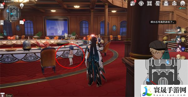 2、接着在宴会桌子上找到NPC贝拉进行交互。