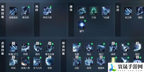 搭配白虹,听雨,雷龙天翔,惊鸿,逐星阵,残月,破空,止戈为武,斩霜/不工,求败