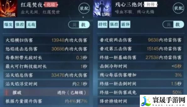 3、最后的绝技推荐带“红莲焚夜”愿意动一动的话还可以选择“残心三绝剑”
