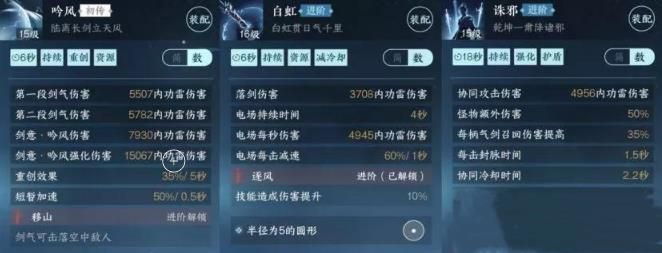 最后也只剩下“吟风”“白虹”“诛邪”这三个技能用来打稳定打输出,伤害占比也较为稳定。