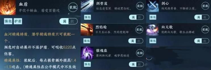 小特质推荐“剑心”“剑骨凌”“烈焰枪”“向天歌”“催魂蛊”“一线牵/青龙借剑”