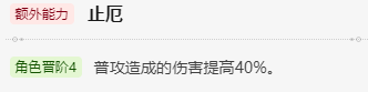 3、天赋是给一个协同攻击的效果,额外能力中有一个普攻40增伤,其他的都中规中矩。