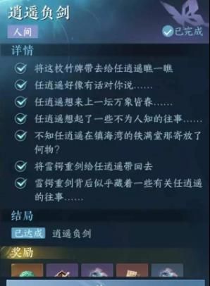 4、返回第2步处向“任逍遥”提交“雪锷重剑”并对话即可完成任务