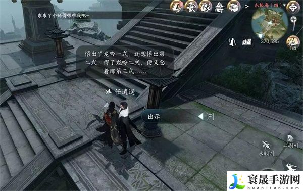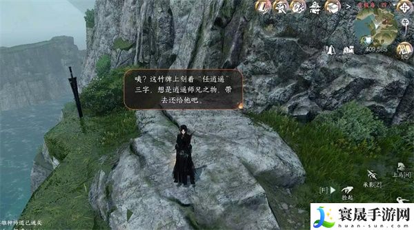 2、接着在前往(370,595)的位置找到“任逍遥”提交“竹牌”,然后进行对话。