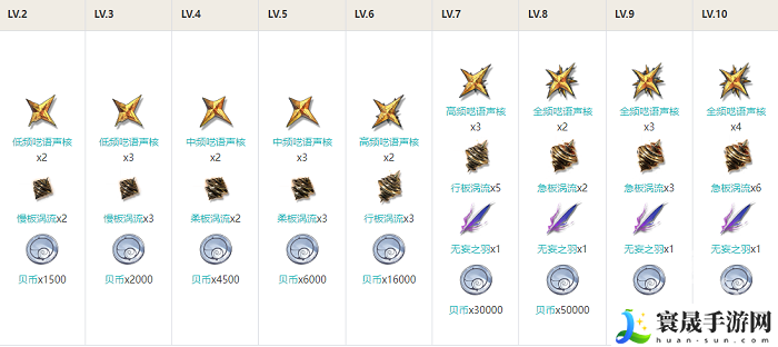 Lv10:全频呓语声核x4+急板涡流x6+无妄之羽x1+贝币x100000