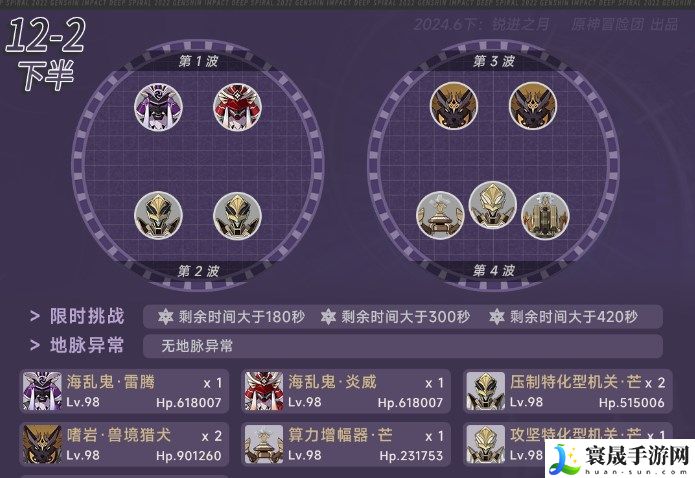 下半则是多波次且高血量/抗性/盾量的群怪,对队伍的综合能力要求更高,并且需要有良好的破火盾能力。推荐兼具良好的对群输出和水元素附着能力强队伍。