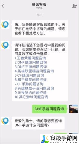 3、然后就会出现相关的问题选择,就选择DNF手游问题咨询就可以了。