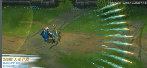 射出多只蓝金的箭矢,获得攻速和额外的伤害加成。