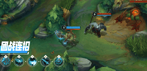 同时,我们可以衔接普攻打出被动技能的回血效果,随后施放E(3)技能减速敌人,配合队友完成GANK。