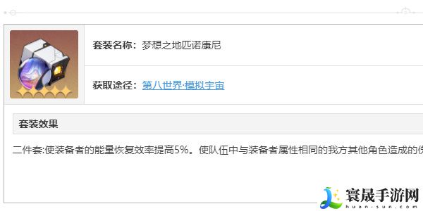 使装备者的能最恢复效率提高5%,使队伍中与装备者届性相同的我方其他角色造成的伤害提高10%。