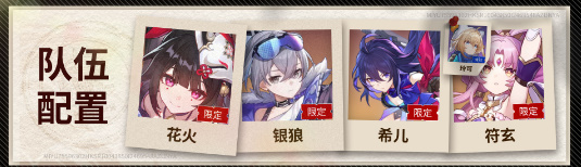 1、银狼+花火+希尔+玲可/符玄