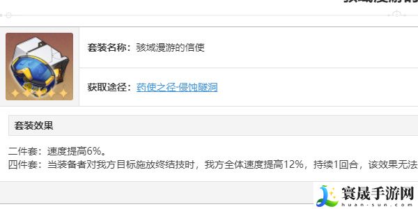 信使2件套可以提高花火的速度,四件套还可以让花火在释放大招时提高全队的速度,再次提高自己的辅助能力,是一个不错的选择。
