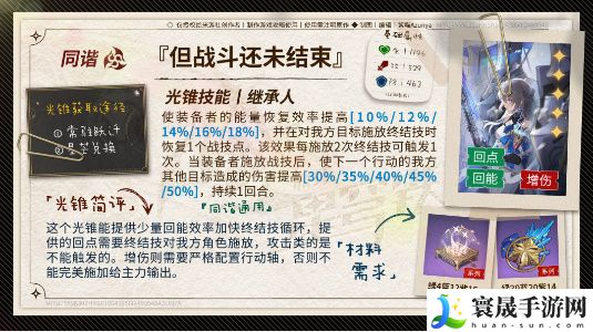 这是一个常驻五星,光锥技能提供常驻的能量回复效率、每两个终结技一次的战技点回复,以及施放战技后下个行动角色高额增伤。叠影四级的这个光锥,则可以让花火无需充能绳也满足三回合循环,降低配装压力。