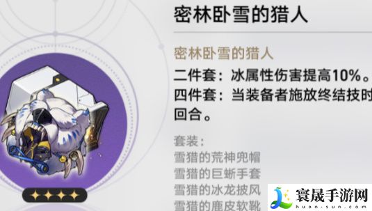 该套装组合提供冰属性伤害加成和释放终结技时暴击伤害加成,第二个效果对米沙这个以终结技为主要输出的角色来说是不错的加成,覆盖率以米沙三回合满能的情况,只要在米沙回合内施放终结技就可以无缝续接。