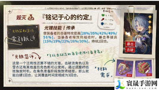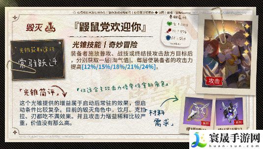 这是一个只能提升攻击力的光锥,并且需要通过普攻、战技、终结技各施放一次来叠满层数启动,启动后就是常驻的了。攻击力是米沙比较缺少的属性,能够有效提高米沙的伤害。