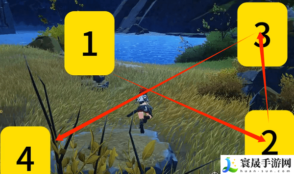 3、我们需要依次按顺序击打宝箱周围的四根柱子。